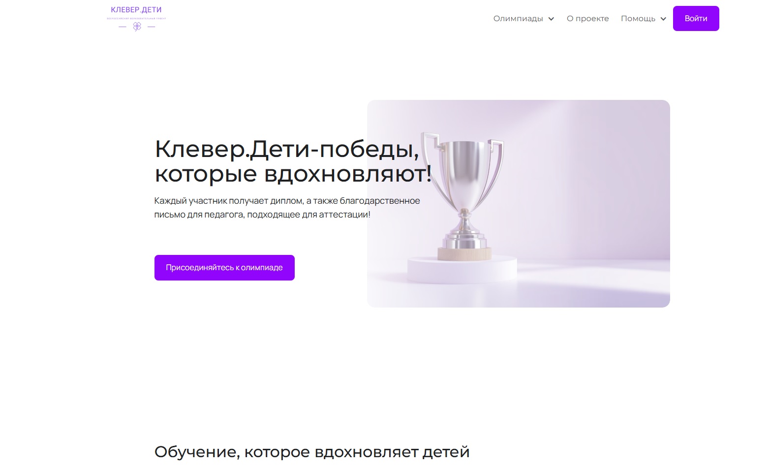 В рамках реализации национального проекта «Молодежь и дети», федеральных проектов «Современная школа», «Успех каждого ребенка», «Новые возможности для каждого», а также в соответствии с Федеральным законом «Об образовании в Российской Федерации» Министерство просвещения Российской Федерации совместно с образовательными организациями проводит Всероссийскую олимпиаду «Клеверенок. Сезон 26».