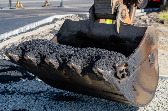 Устанавливают бордюрный камень и асфальтируют территорию на проспекте Ленина, 1А.