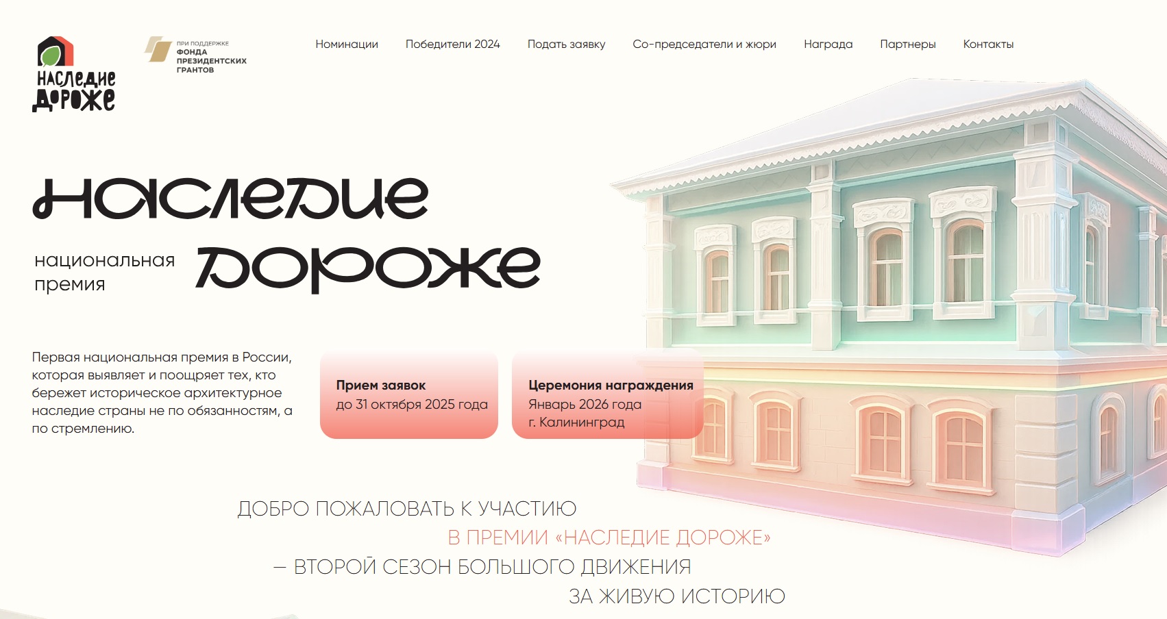 Экспертное жюри премии — лидеры общественного мнения в деле сохранения наследия — выберет победителей в семи номинациях.