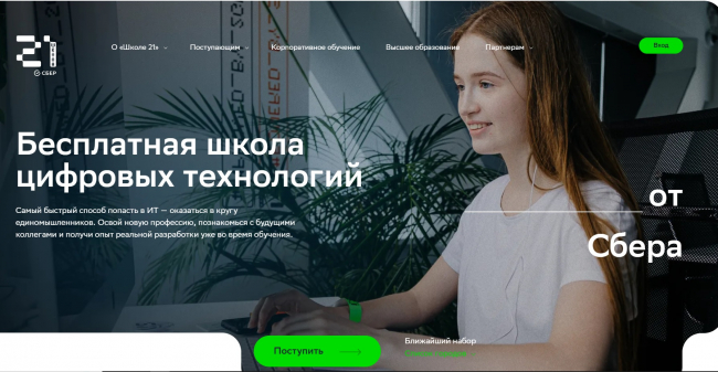 «Школа 21» – школа цифровых технологий от Сбера, которая даёт возможность всем желающим от 18 лет бесплатно получить востребованное образование в сфере ИТ. Поступление не зависит от предыдущего опыта, знаний или дипломов. Обучение проходит на отечественной цифровой платформе, ориентированной на реальные потребности рынка.