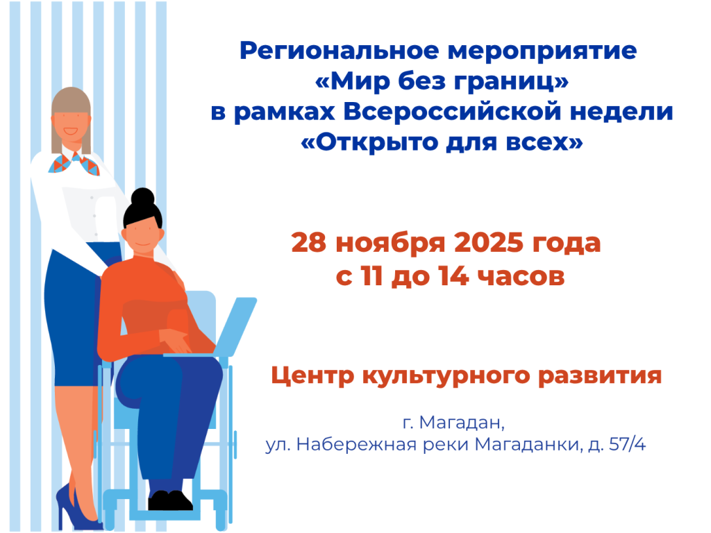 В Магадане в преддверии Международного дня инвалидов пройдет Всероссийская неделя «Открыто для всех», которая призвана охватить различные аспекты жизни человека с инвалидностью и его семьи. Также запланированы мероприятия в поддержку общества равных возможностей.
