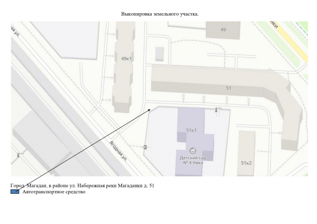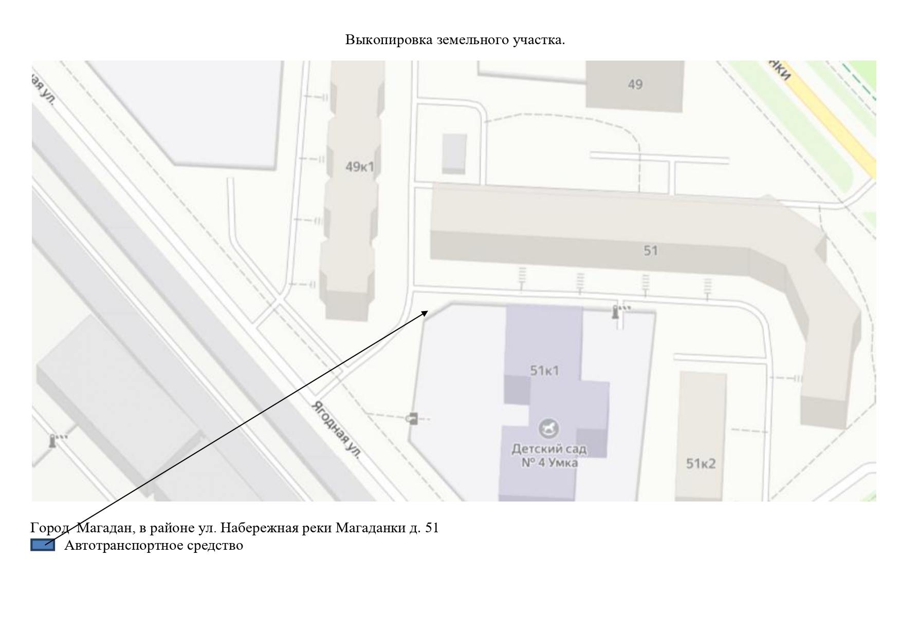 Муниципальное казенное учреждение города Магадана «Административно-техническая инспекция города Магадана» (далее МКУ «АТИ»), предусмотренными требованиями постановления мэрии города Магадана № 157 от 30.01.2019 г.«Об организации сноса (вывоза) незаконно установленного (размещенного) движимого имущества на территории муниципального образования «Город Магадан» извещает собственников движимого имущества (автотранспортное средство), расположенного на земельном участке без кадастрового номера в районе ул. Набережная реки Магаданки, д. 51, в г. Магадане, о необходимости в 7-дневный срок с момента опубликования данного объявления предоставить правоустанавливающие документы на имущество в МКУ «АТИ» по адресу: г. Магадан, пл. Горького, д. 3 б, каб. № 2.