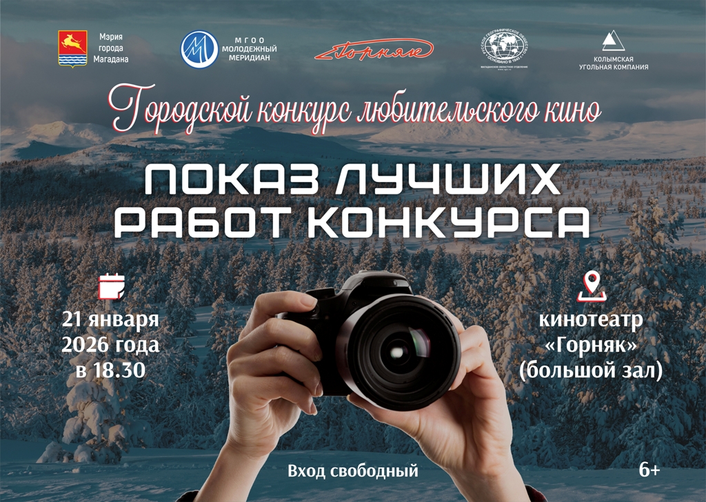 В Магадане в большом зале кинотеатра «Горняк» состоится показ лучших работ городского конкурса любительского кино (6+). Мероприятие пройдет 21 января в 18:30. Вход на показ свободный.