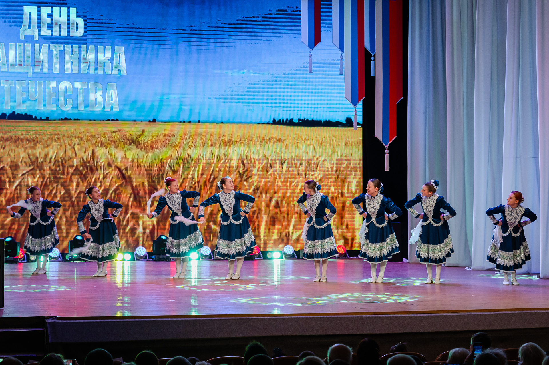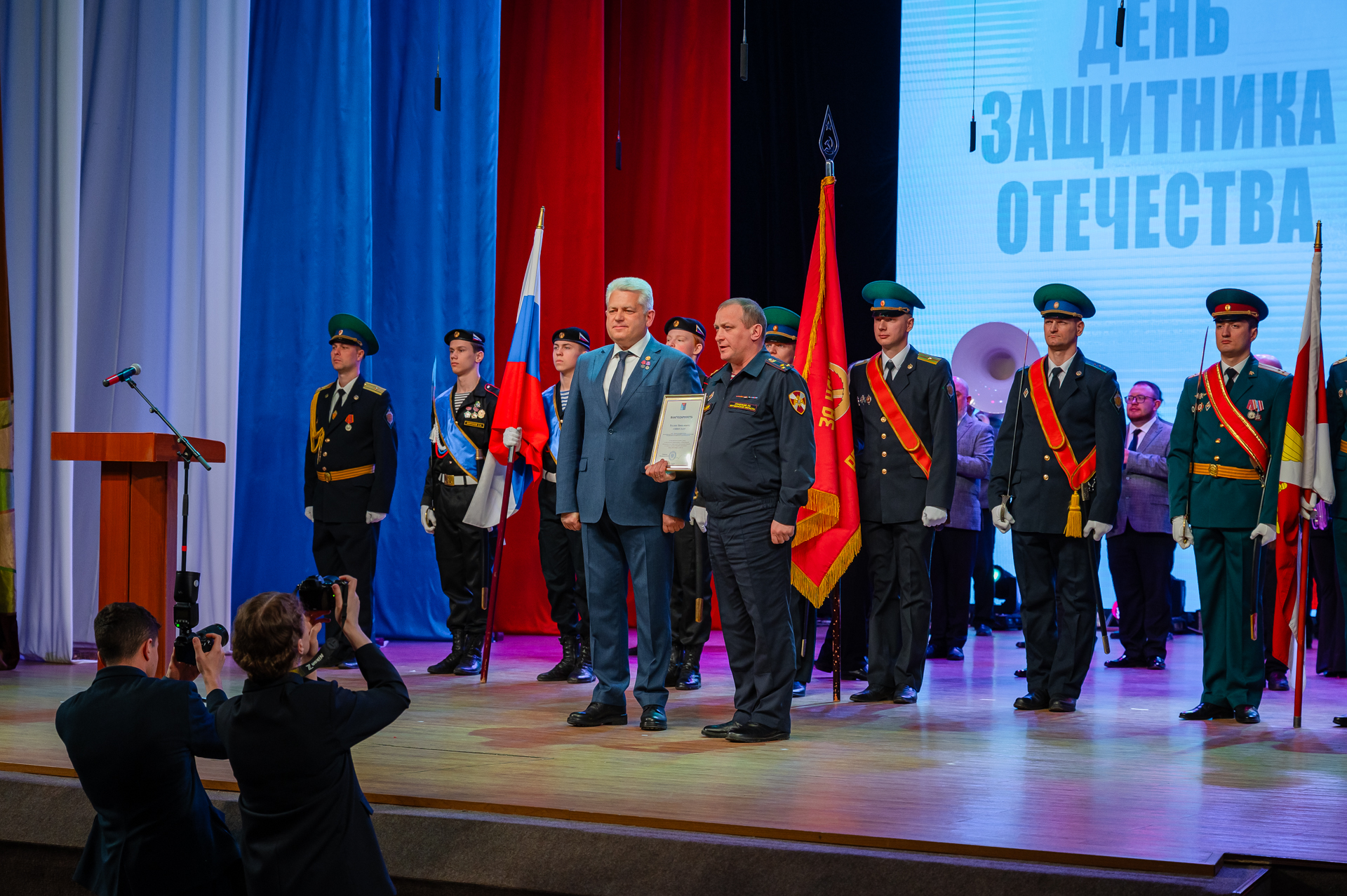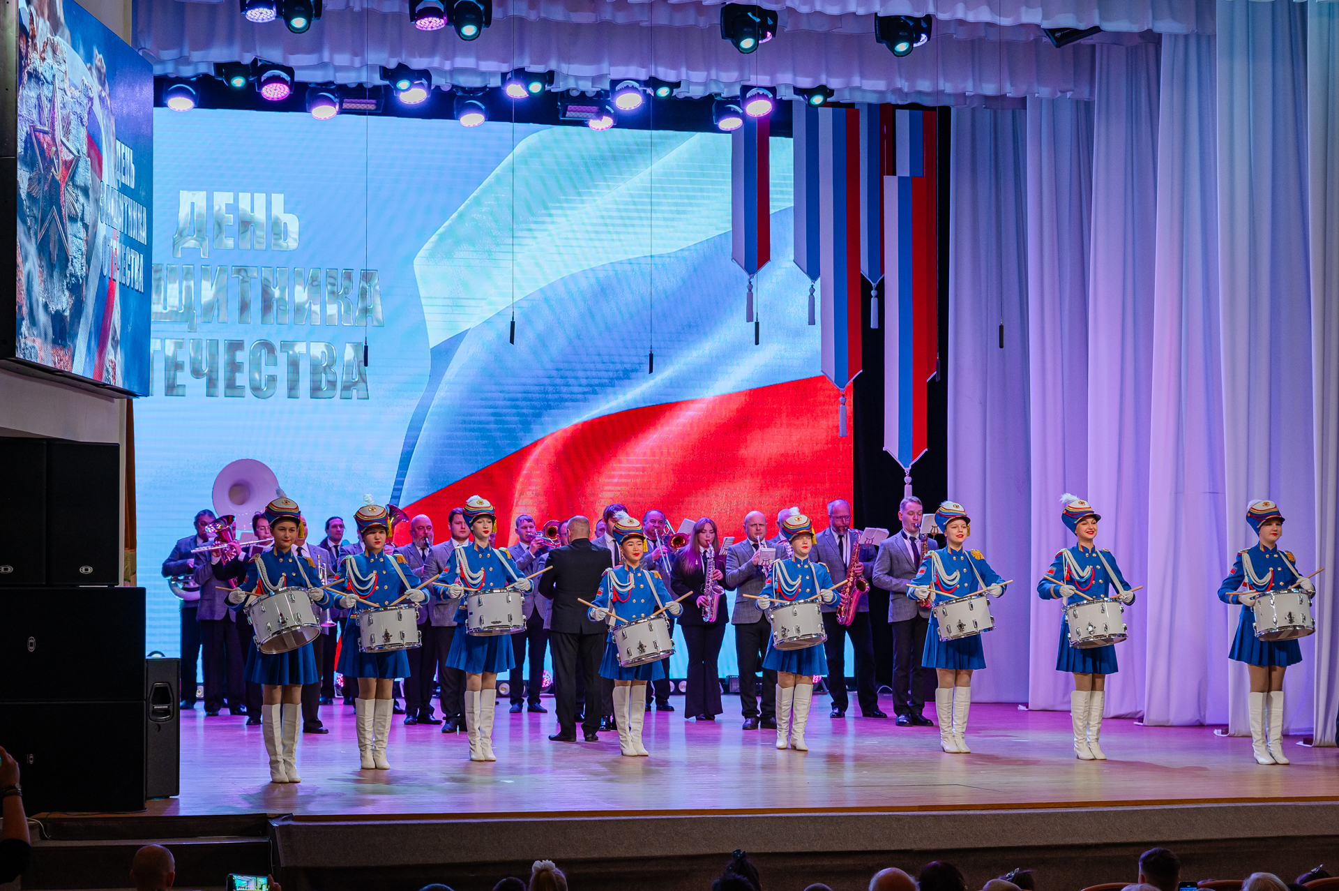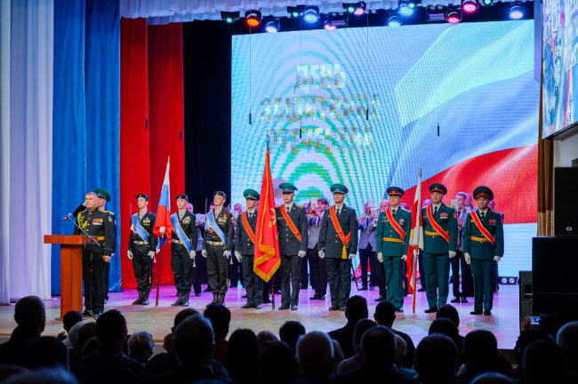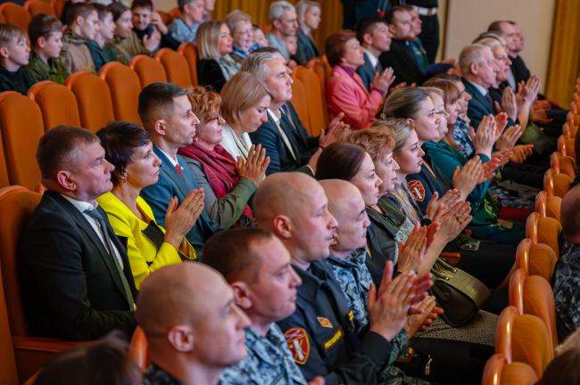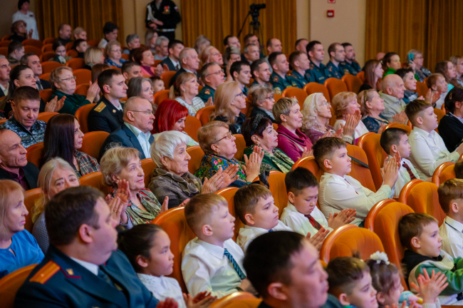 Ключевое событие этого дня – торжественный концерт «Мужество. Доблесть. Честь». Он прошел в большом зале Центра культуры. Собравшиеся приветствовали знаменную группу, в состав которой вошли сотрудники Росгвардии, Пограничного управления и воспитанники центра «Подвиг».