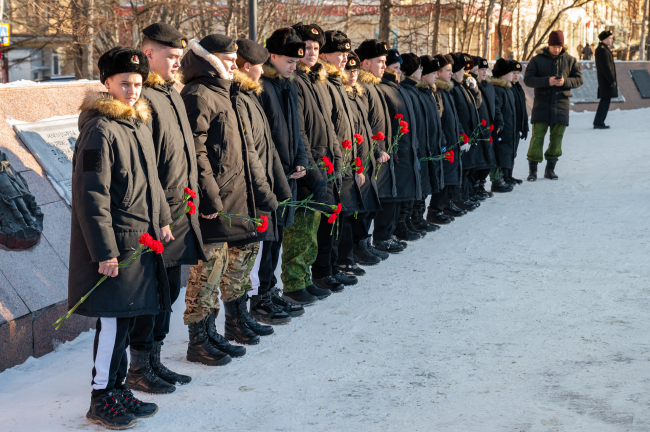 Традиционно минутой молчания почтили память павших защитников Родины, тех, кто стоял за нее в годы Великой Отечественной войны, кто погиб в локальных конфликтах, горячих точках, на линии фронта специальной военной операции, кто в мирное время пал смертью храбрых, исполняя служебный долг.