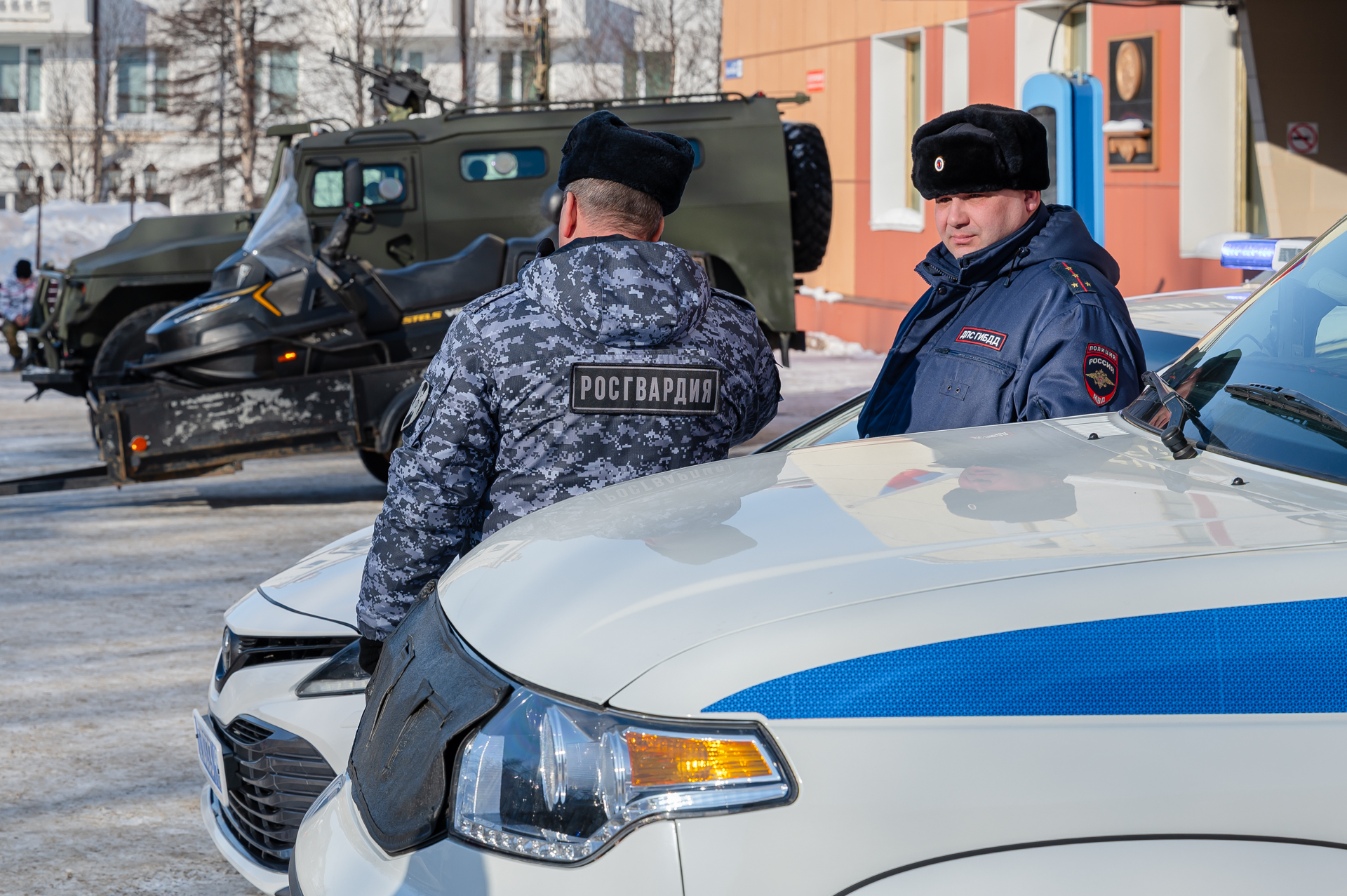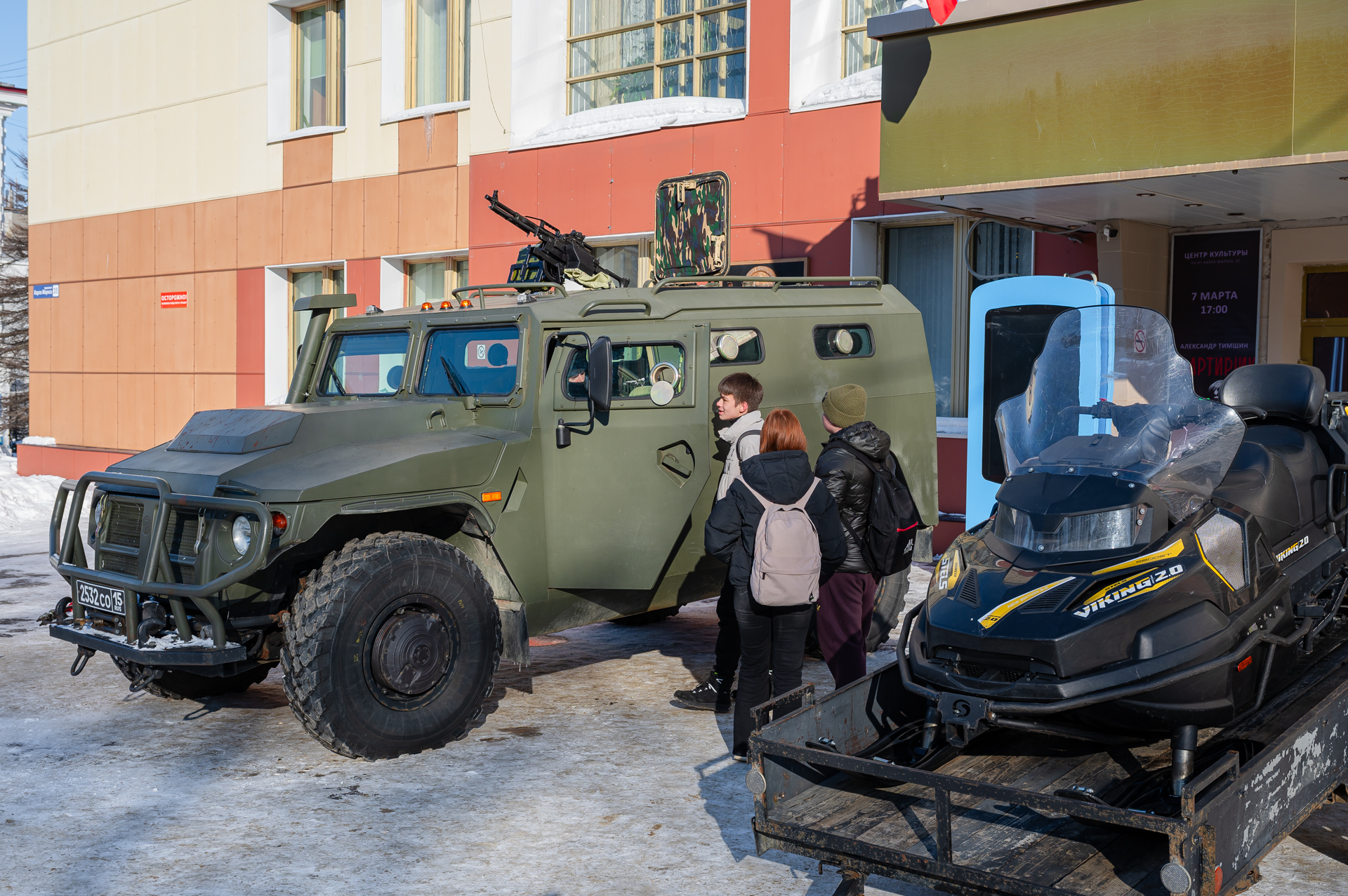 Центр культуры встречал гостей большой военно-патриотической выставкой. Здесь они смогли познакомиться с работой силовых структур, поближе рассмотреть снаряжение, оружие и различную технику.