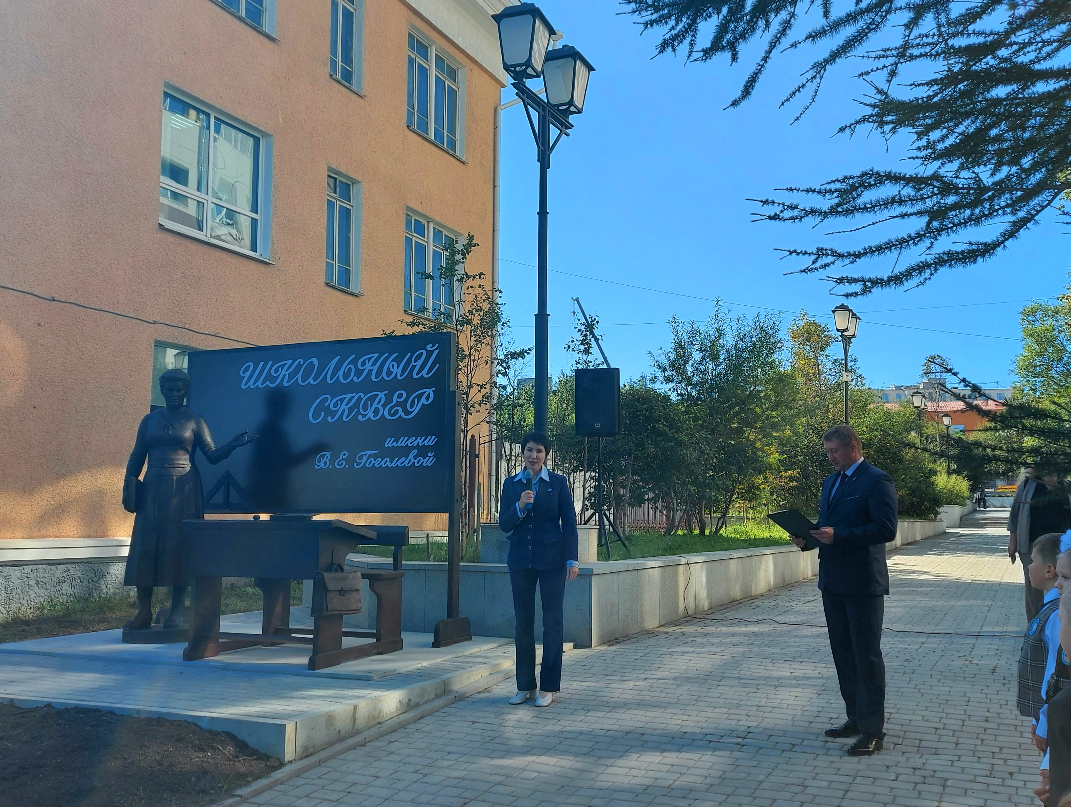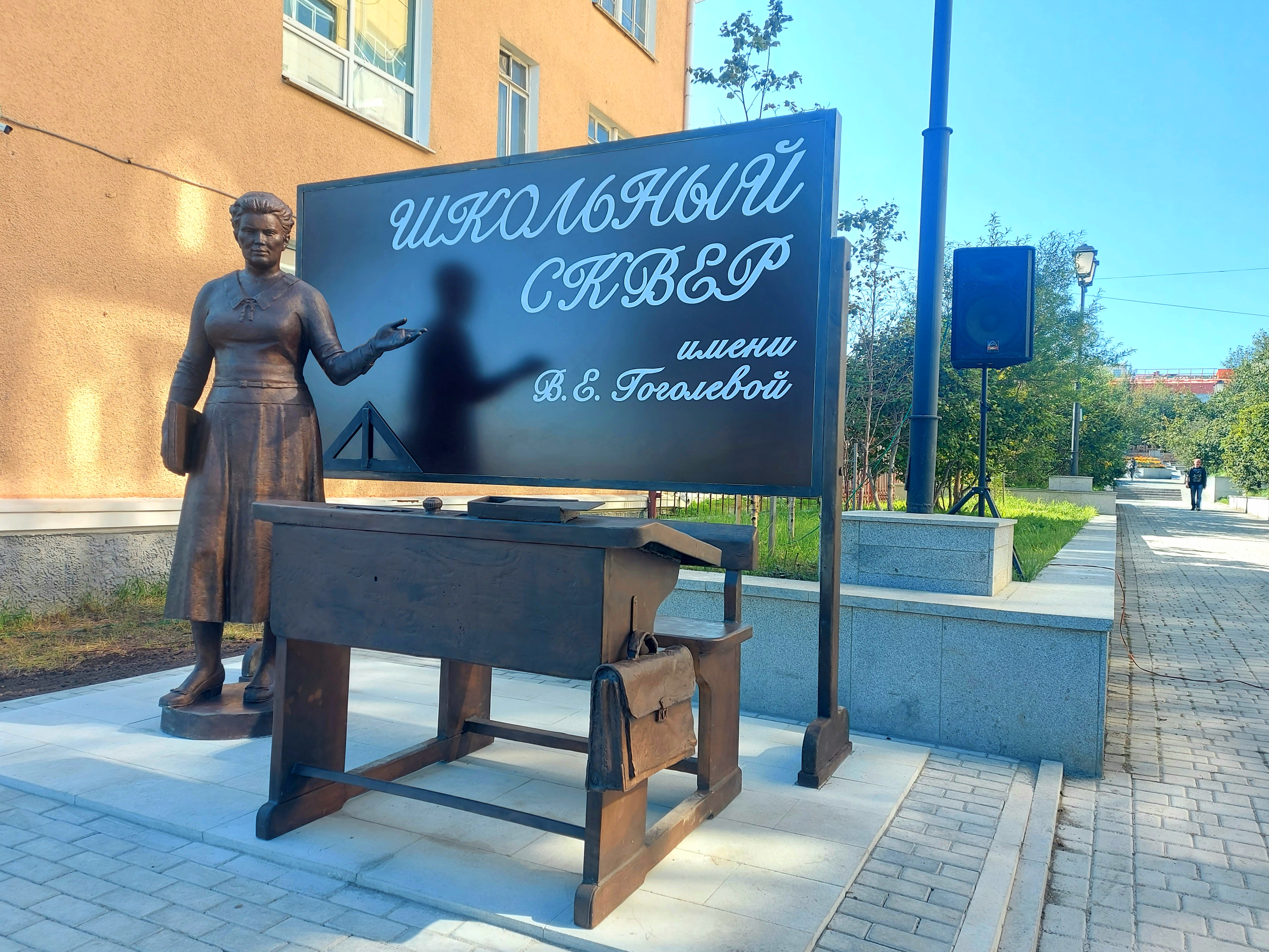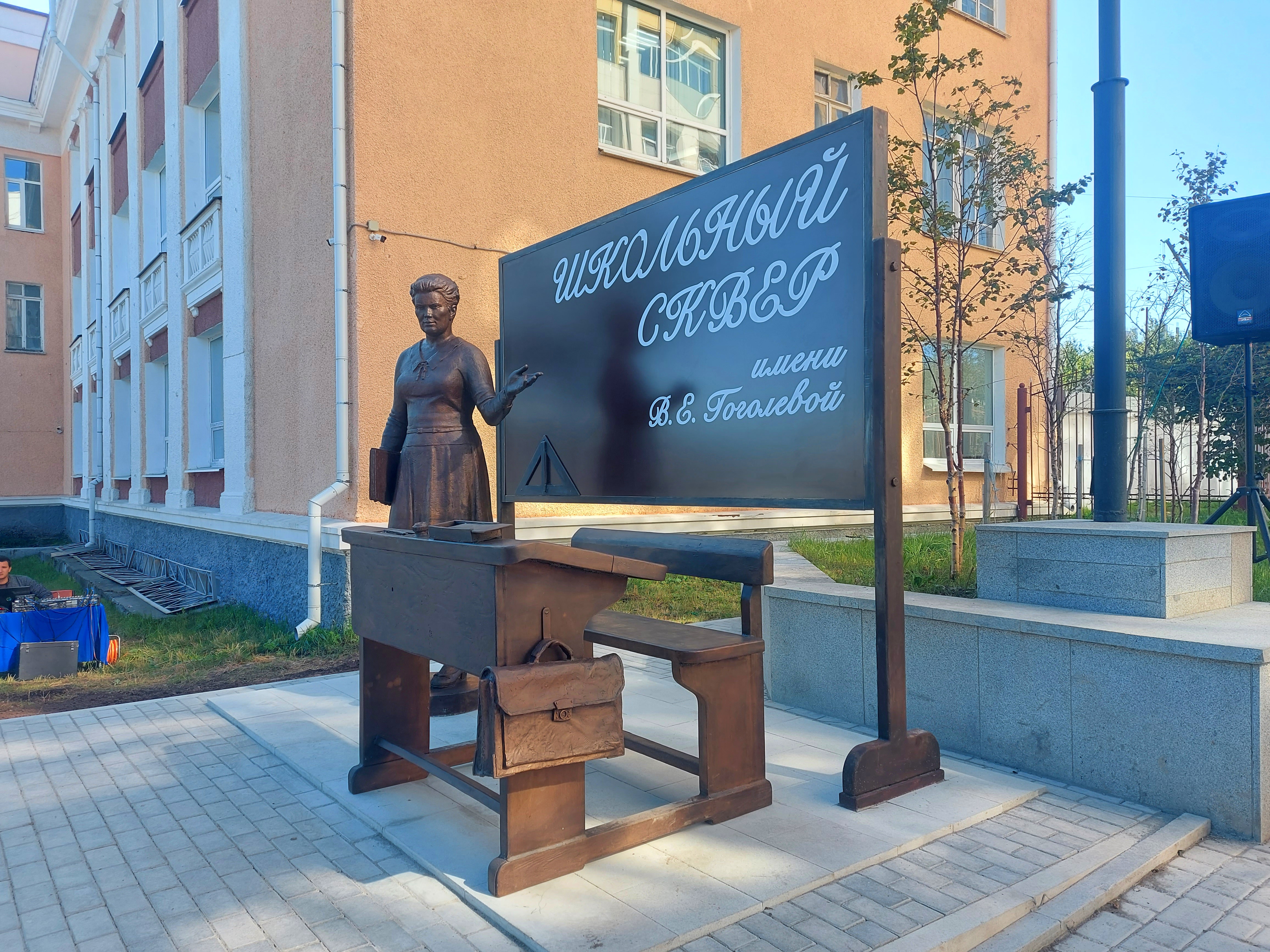 Открытие композиции состоялось в рамках традиционного педагогического фестиваля «ВераФест», который включал марафон по интеграции современных технологий в индустрию школьного образования «Искусственный интеллект в работе современного педагога». Мероприятие посвящено памяти заслуженного учителя РФ, Почетного гражданина города Магадана Веры Ефимовны Гоголевой. А завершением фестиваля стало открытие нового арт-пространства – памятника учителю.