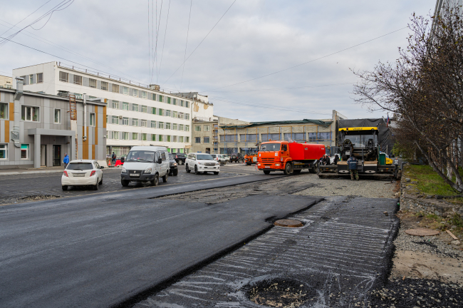 Благоустройство в Магадане в ежедневном режиме ведут городские службы в любое время года. Так, учреждением ГЭЛУД в текущем сезоне, помимо задач по уборке и мытью проезжей части, прочистке ливневых канализаций и инженерных сетей, грейдированию дорог, а с наступлением заморозков добавилась противогололедная обработка, ведется асфальтирование участков улично-дорожной сети.