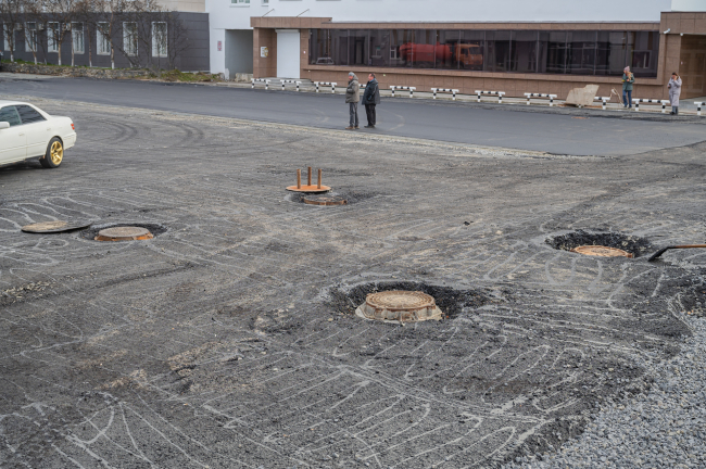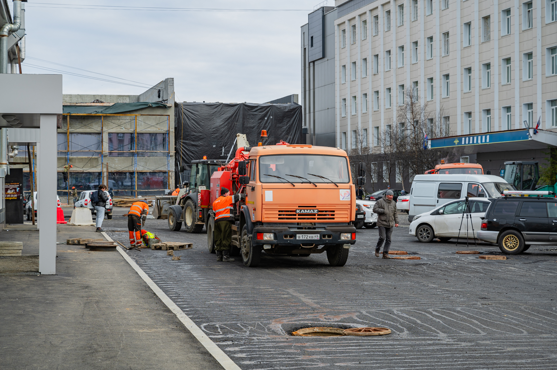Один из самых масштабных по объему выполняемых задач участков, на котором сейчас кипит работа, это хорошо известный магаданцам заезд у автовокзала на проспекте Ленина, 1А. Внушительная территория площадью свыше 3,5 тысячи квадратных метров приобретает все более завершенный вид.