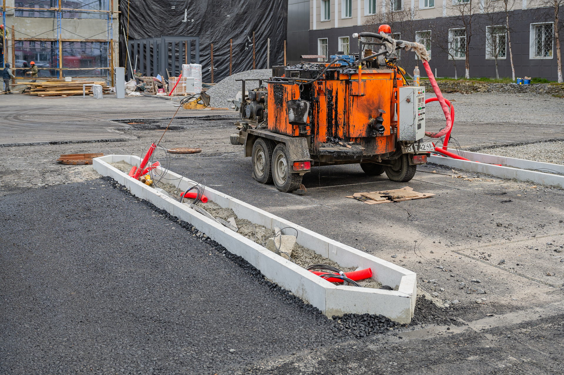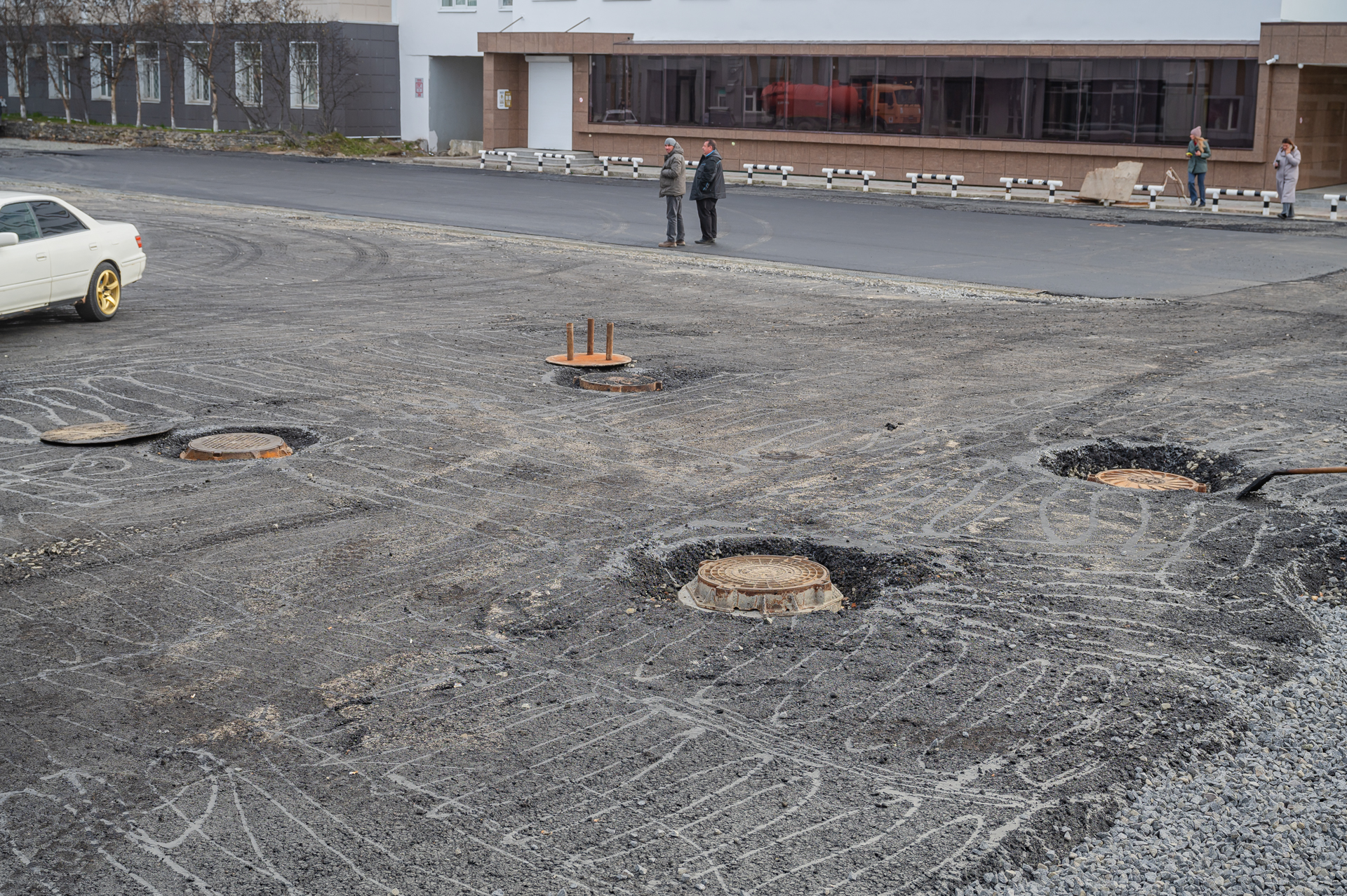 Территорию на Ленина, 1А благоустраивают в Магадане: здесь появится система водоотведения и новый асфальт
