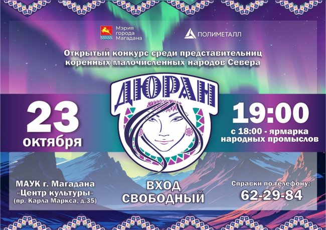 В четверг, 23 октября в 19:00 в МАУК города Магадана «Центр культуры» состоится открытый конкурс среди представительниц коренных малочисленных народов Севера «Дюран-2025».