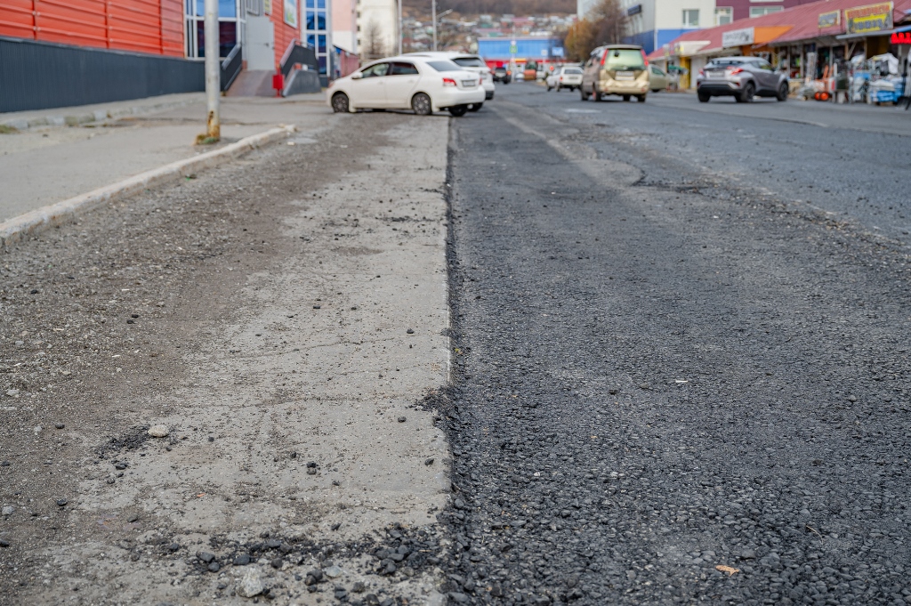 На улице Пушкина в Магадане завершен первый этап ремонта дорожного полотна