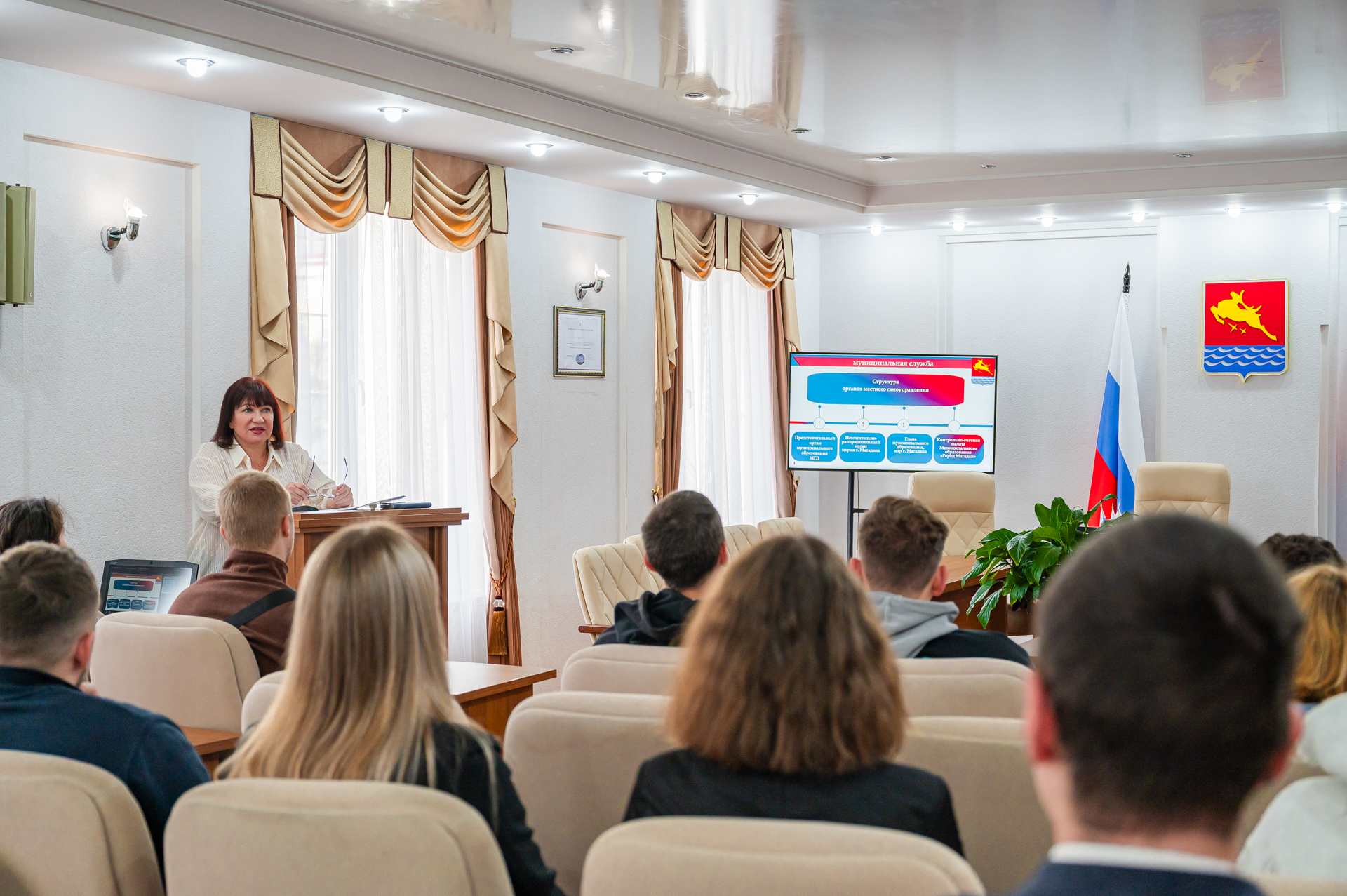 Она рассказала о структуре местного самоуправления, чем служба отличается от работы, какие карьерные перспективы ждут молодежь при трудоустройстве, и как можно себя реализовать в мэрии города и ее подведомственных органах. А в качестве наглядного примера, доказывающего, что в органе местного самоуправления открыта дорога молодым, Людмила Владимировна представила студентам молодого руководителя управления административно-технического контроля Даниила Красковского.