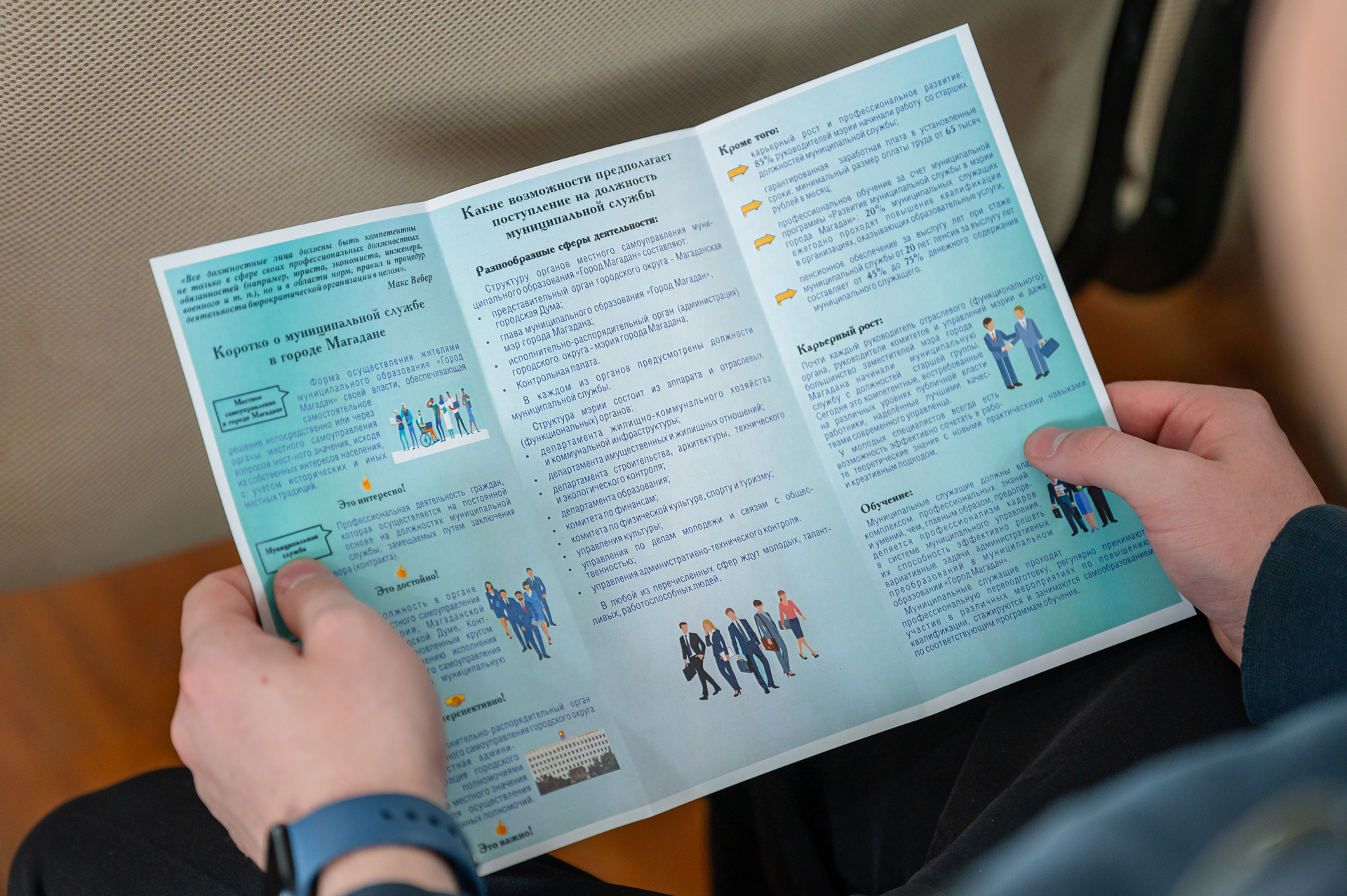 Презентационные материалы, с которыми познакомились студенты во время посещения мэрии, были также представлены во время обучения по региональной кадровой программе «СВОи Герои 49». Отметим, что в Магаданской области реализуется аналог федерального проекта «Время героев», инициированного Президентом РФ Владимиром Путиным.