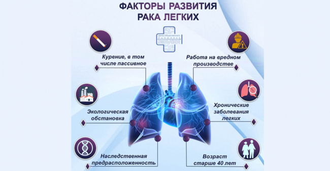 Как сообщают в отделе охраны здоровья мэрии города, факторы риска развития рака легкого можно разделить на две категории – внутренние и внешние. К первым относится наследственный анамнез: если кто-то из кровных родственников болел раком легкого или погиб от него, то у этого человека повышен риск развития данного заболевания. Также к внутренним факторам риска нужно отнести хронические заболевания легкого, которые также автоматически переводят человека в группу риска.