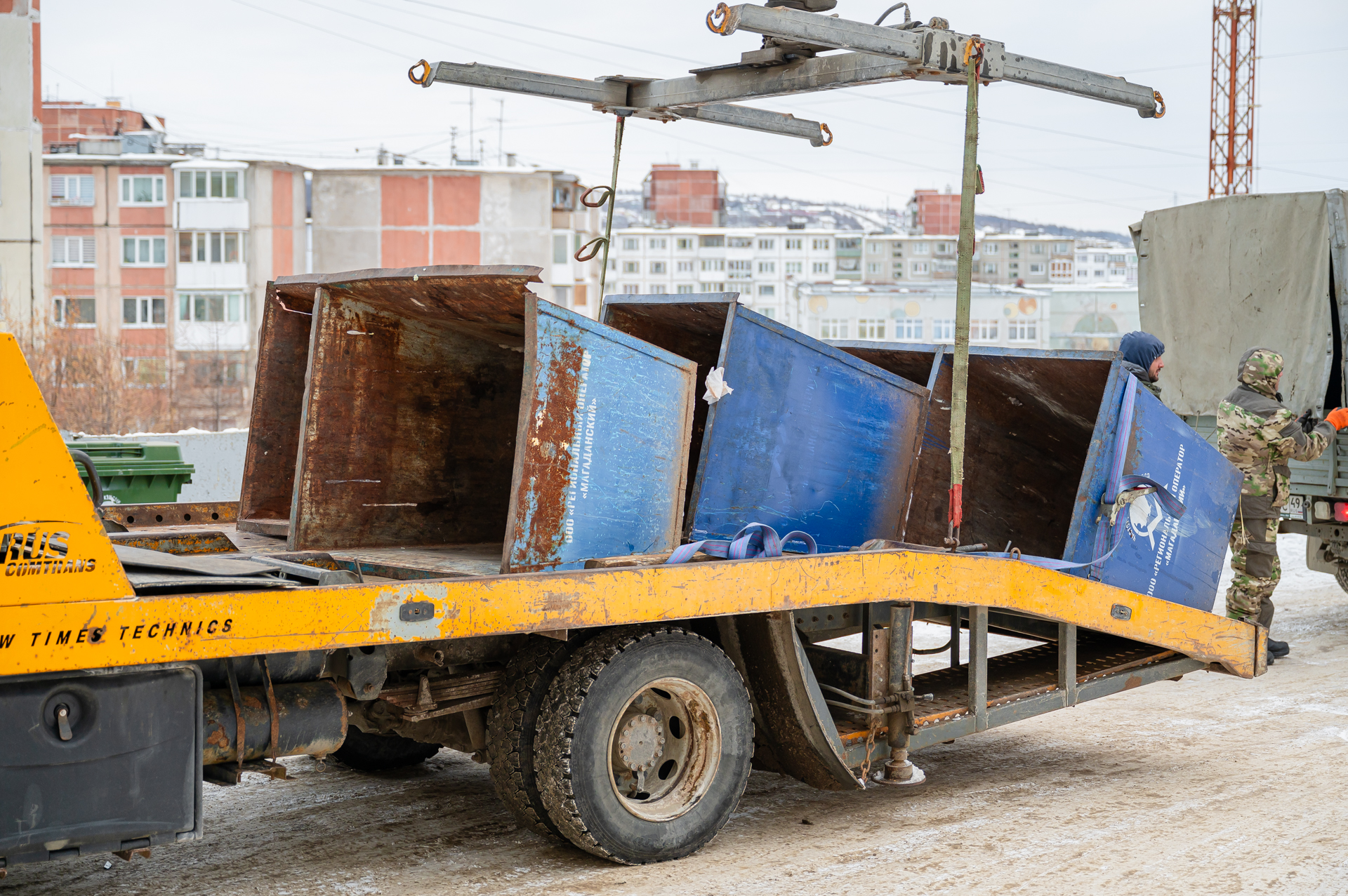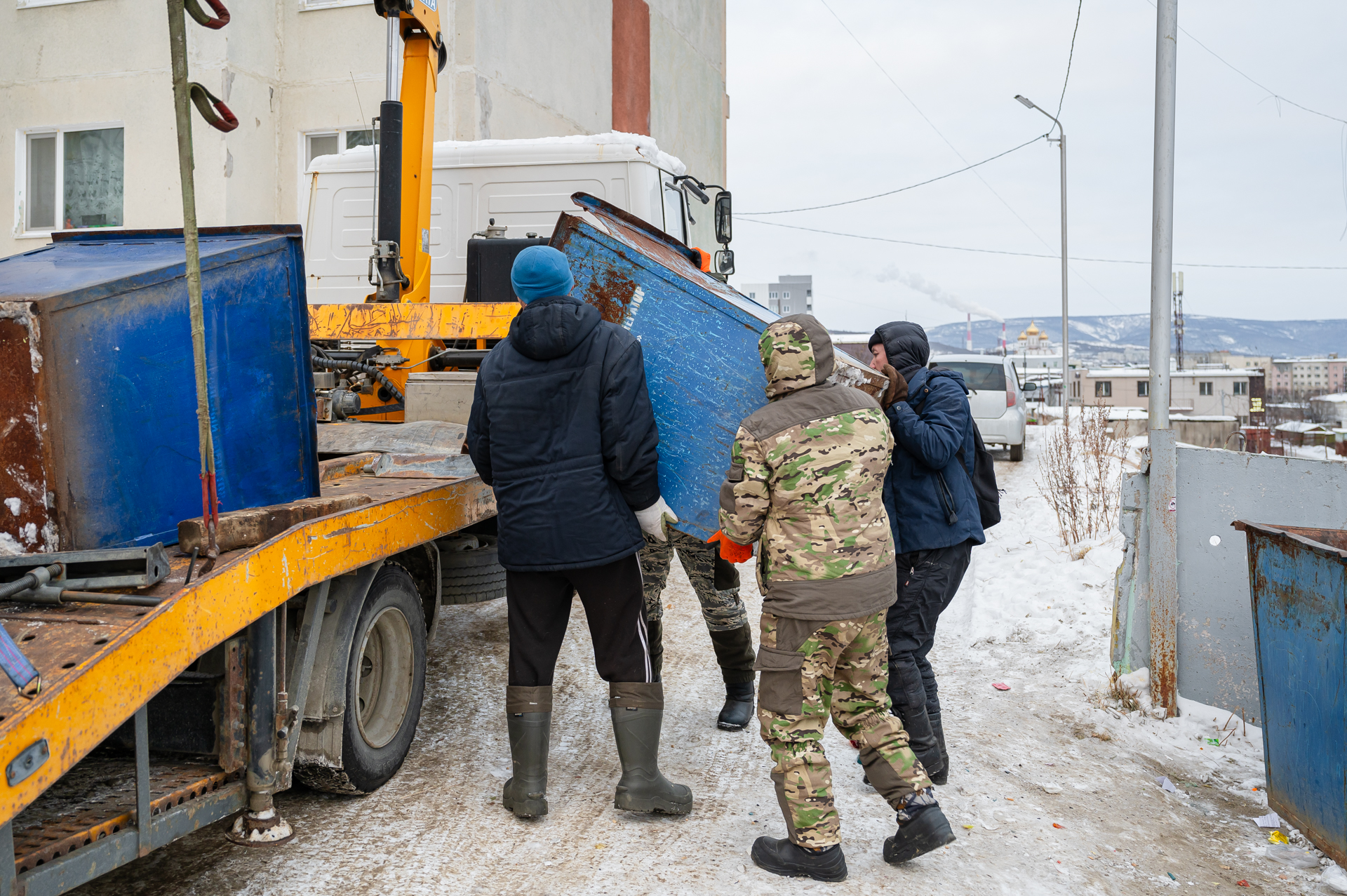 Новые евроконтейнеры взамен старых металлических устанавливают в Магадане