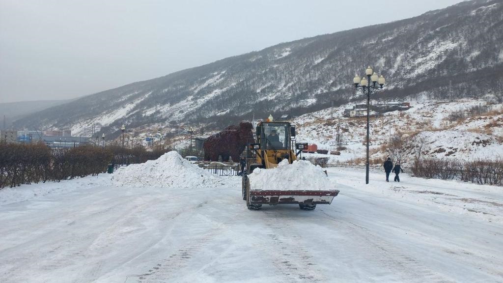 Сегодня в Магадане в связи с погрузкой и вывозом снега возможно затруднение проезда на Набережной реки Магаданки
