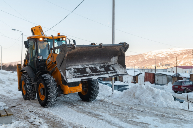 Фронтальные погрузчики и самосвалы грузят снег, расчищают подъездные пути, заезды, остановочные карманы на улицах Транспортной, 8-14, Скуридина, в проезде Билибина-Коммуны, Колымском шоссе. Водители, внимание, в связи с работой техники на указанных участках возможно затруднение проезда.