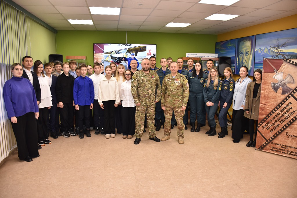 В модельной Центральной городской библиотеке имени Олега Куваева в рамках историко-патриотического проекта «Подвиги наших земляков» состоялась памятная встреча, героями которой стали кавалеры ордена Мужества, ветераны боевых действий Андрей Аксанов и Тофик Топорищев.