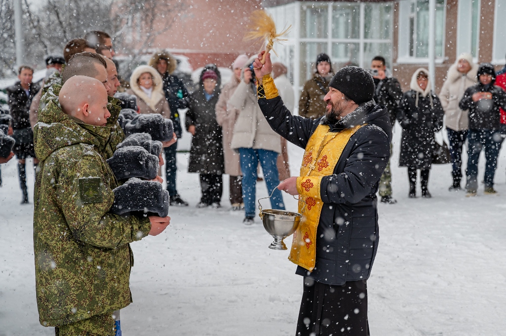 К парням также обратился представитель Магаданской епархии, руководитель отдела по взаимодействию с Вооружёнными силами иерей Василий Бызгаев. Он пожелал призывникам крепкого здоровья, подарил Евангелие и окропил ребят святой водой.