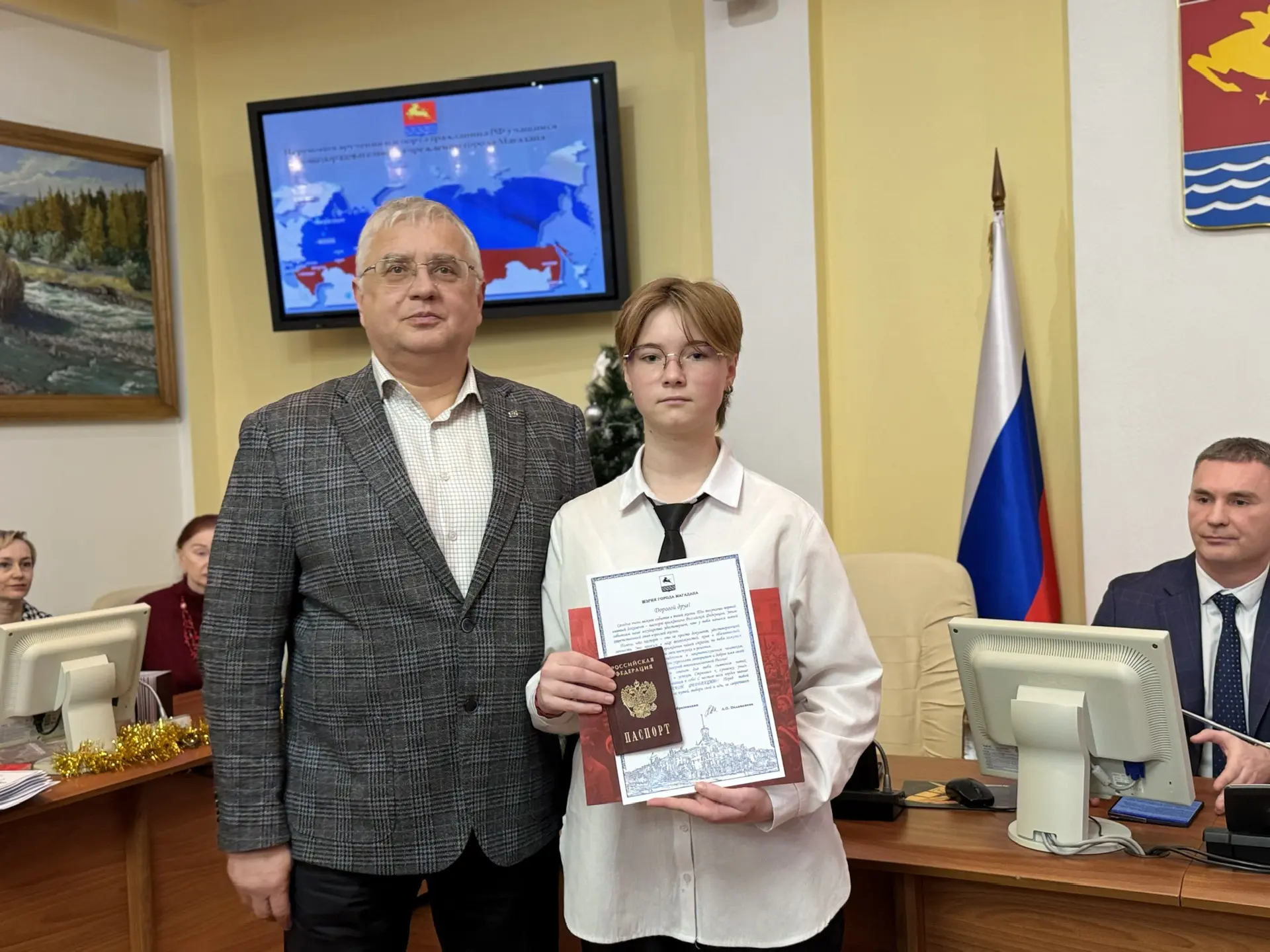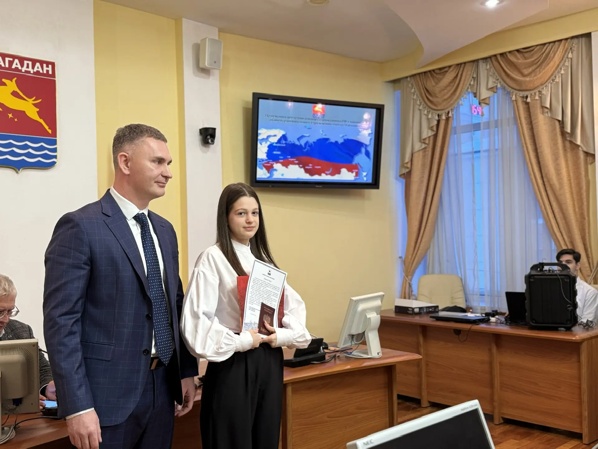 В Магадане вручать паспорта юным горожанам 12 декабря в торжественной обстановке стало доброй традицией. Такой чести удостаиваются отличники учебы, активисты ученического самоуправления, спортсмены и артисты.