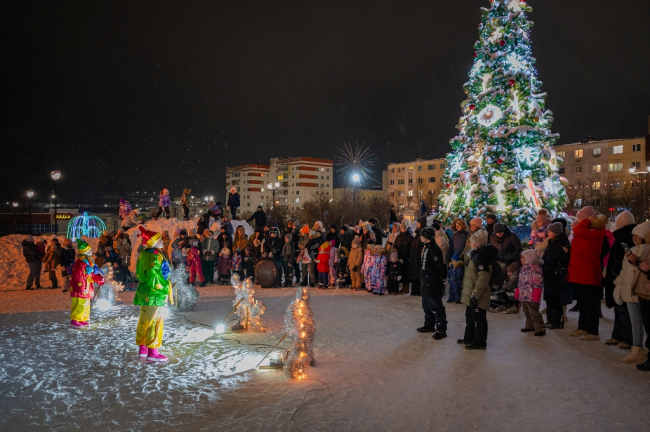 Кроме того, стало доброй традицией проводить новогодние мероприятия у городских красавиц. Праздничным убранством уже могут похвастаться искусственные и елочки из стланика (их собирают из порубочных остатков кустарника, полученного во время противопожарных работ) в поселках Сокол и Уптар, в микрорайонах Снежный и Пионерный. В минувшие выходные в рамках программы «Огоньки ожидания чуда» (0+) также зажглась зеленая красавица на площади Космонавтов.