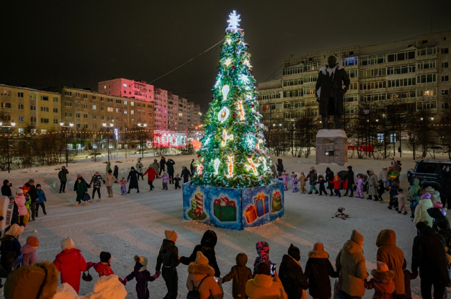 С начала декабря Магадан преображается: снег, городские елочки, светящиеся конструкции и консоли, украшенные фасады зданий – все это привносит в город праздничное настроение.