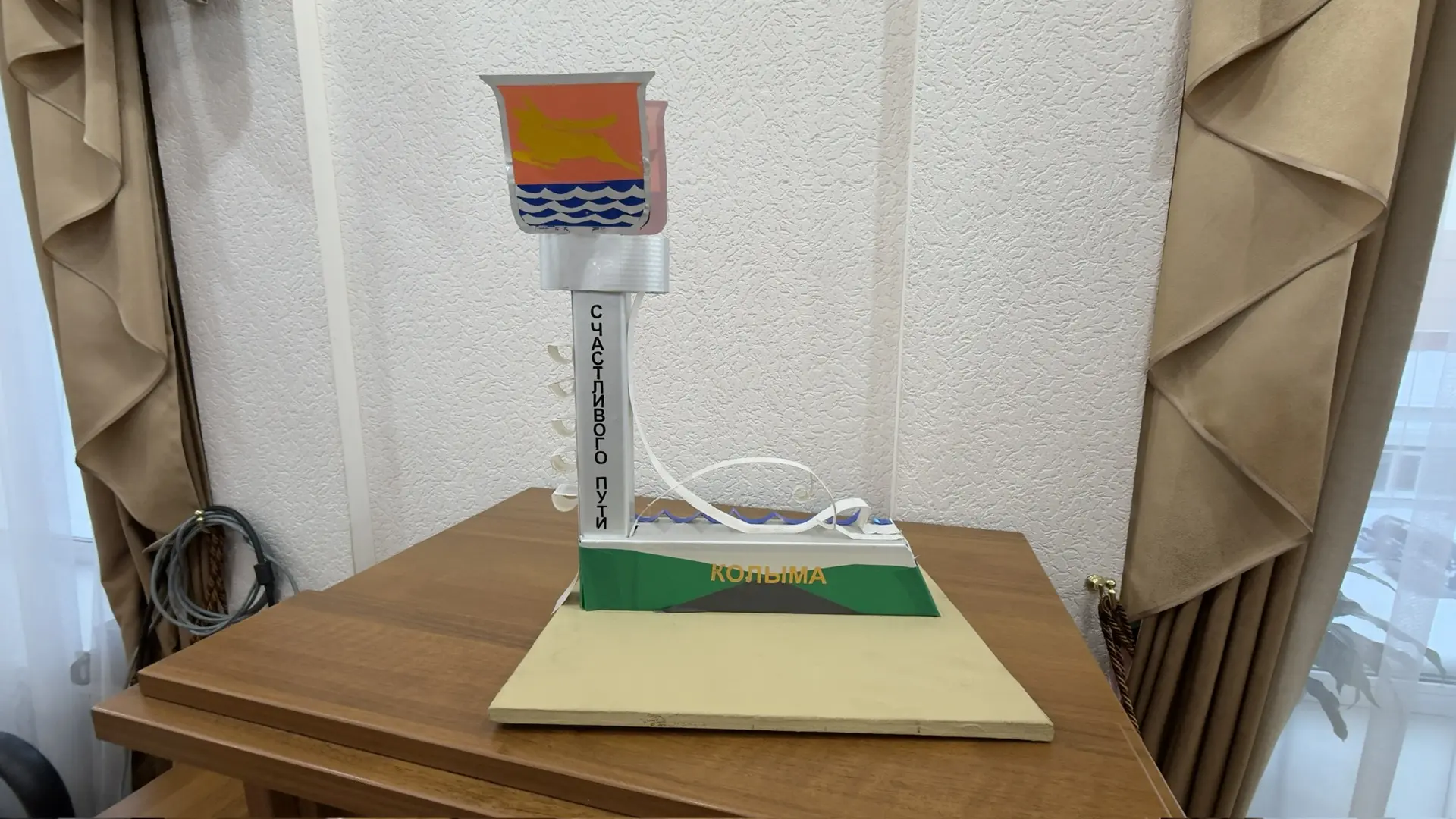 Знак будет наполнен светом, уютом и теплотой очага, к которому так стремится путник, чтобы согреться и насладиться радостью пребывания в нашем краю. Магадан - это теплый, радушный дом, где тебя всегда ждут, - описал свою идею автор.