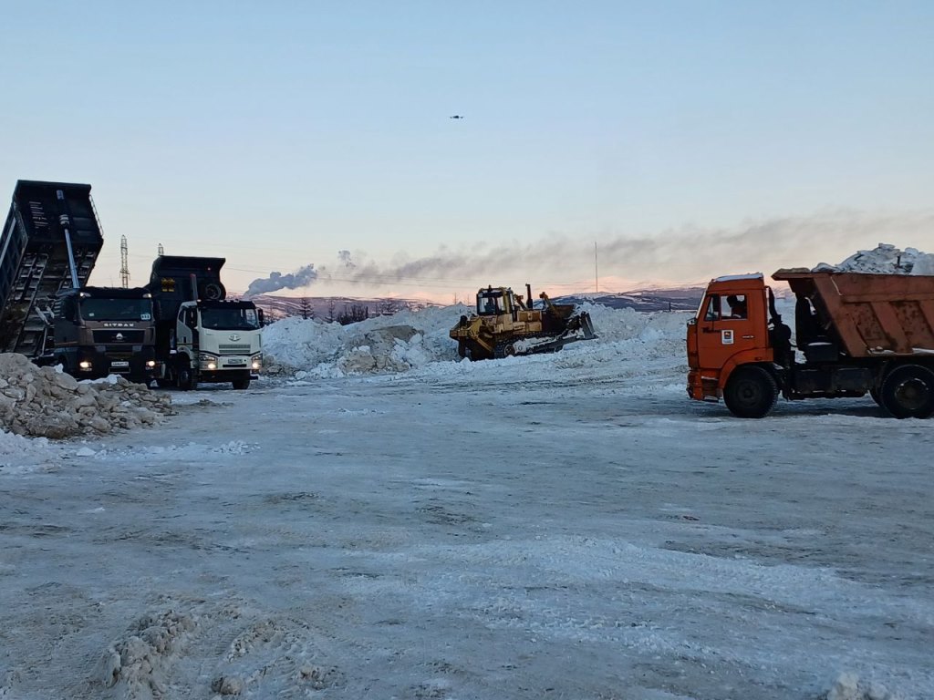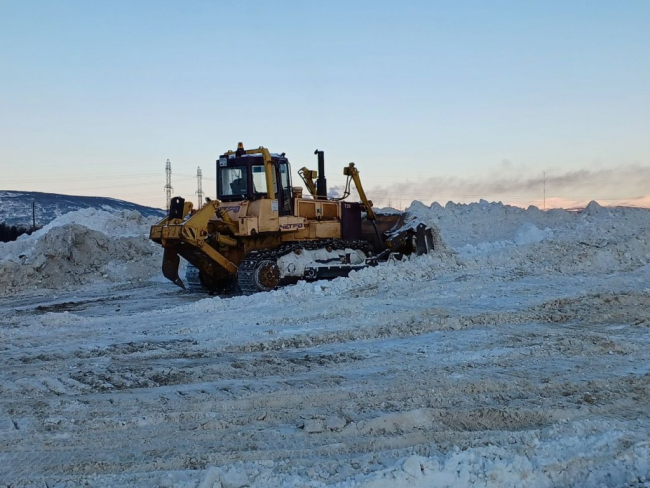 В этом году в городе традиционно сформирован временный пункт складирования снега в Промышленном проезде. Круглосуточно бульдозеры ГЭЛУД здесь ведут разваловку, формируют площадки для выгрузки и подъездные пути.