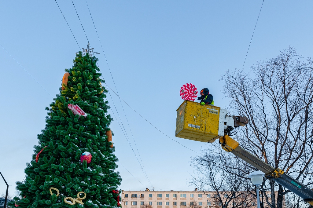 Игрушки, сделанные руками магаданцев, украсили городские зеленые красавицы областного центра