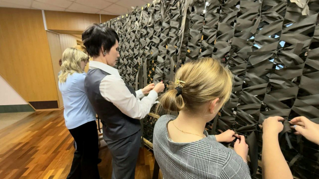 Рамку для плетения полотен установили в мэрии в конце марта этого года, и за 9 месяцев девушки сплели 50 маскировочных сетей. Большая часть из них – увеличенного размера – 27 квадратных метров. Одна из сетей стала адресной – защитное полотно цвета «чернозем» изготовили по заказу бойца за рекордные полтора дня и уже отправили в зону специальной военной операции.