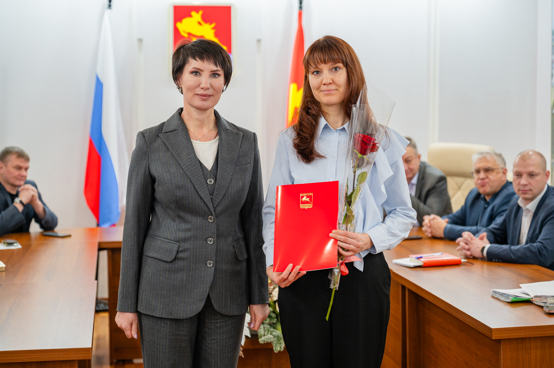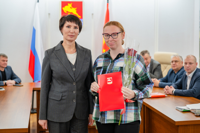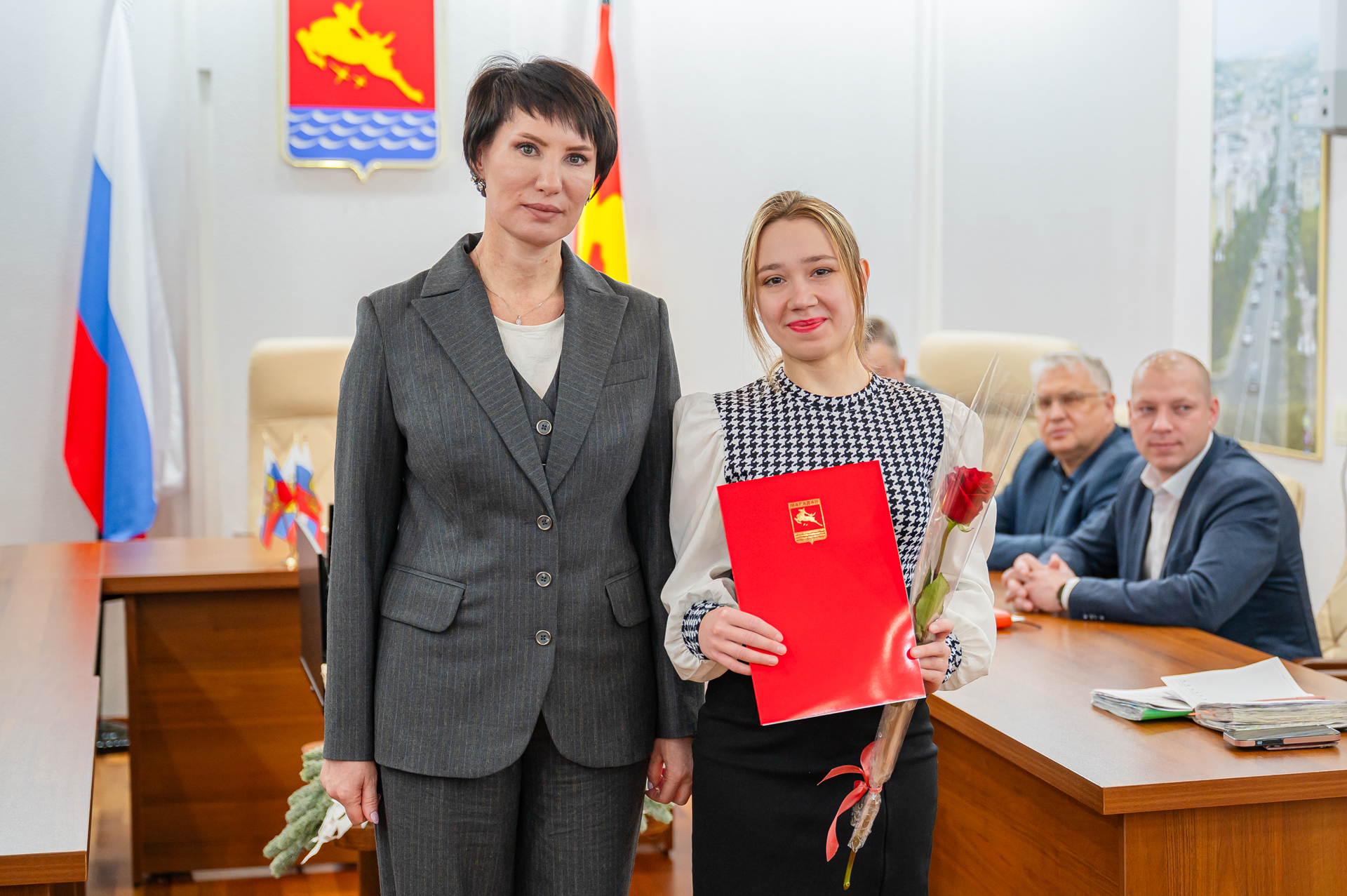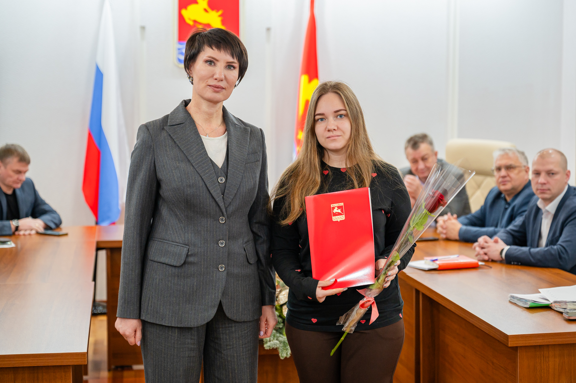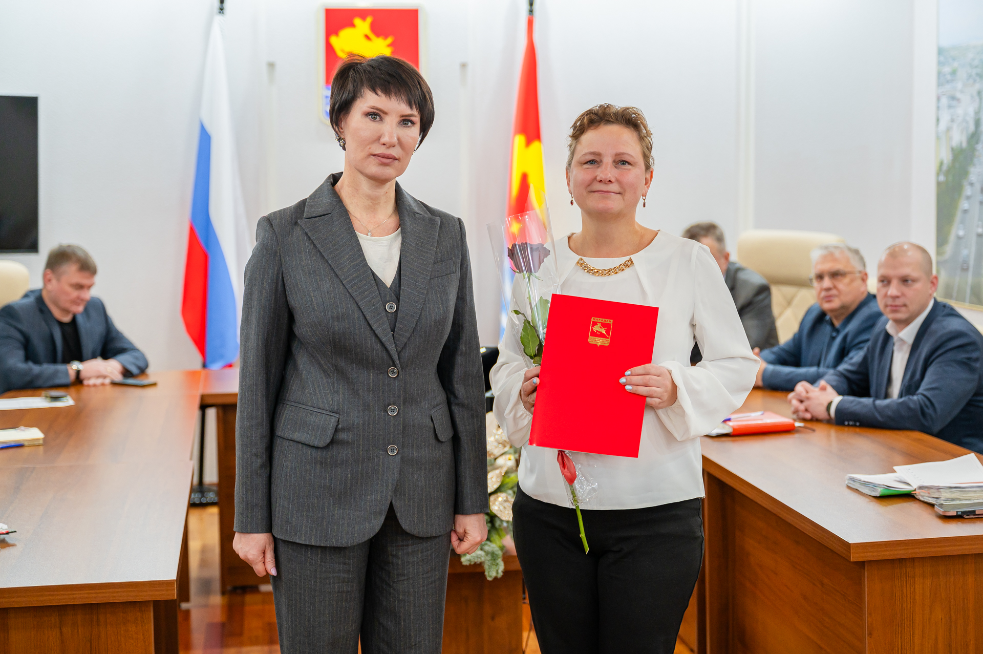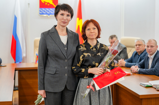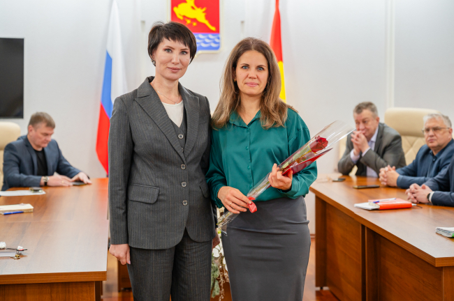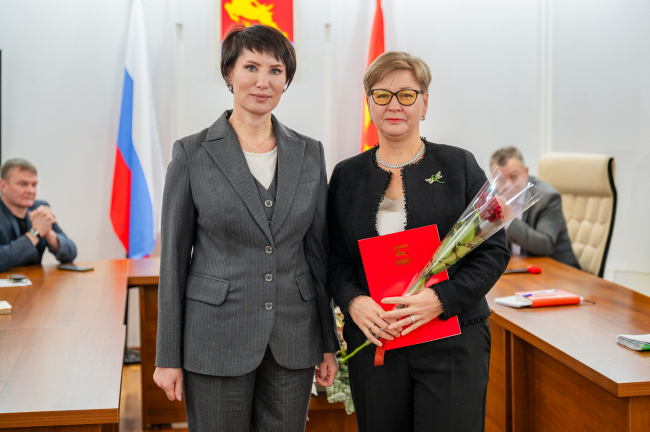 Благодарности главы Магадана вручила специалистам муниципалитета мэр Лариса Поликанова за плетение маскировочных сетей