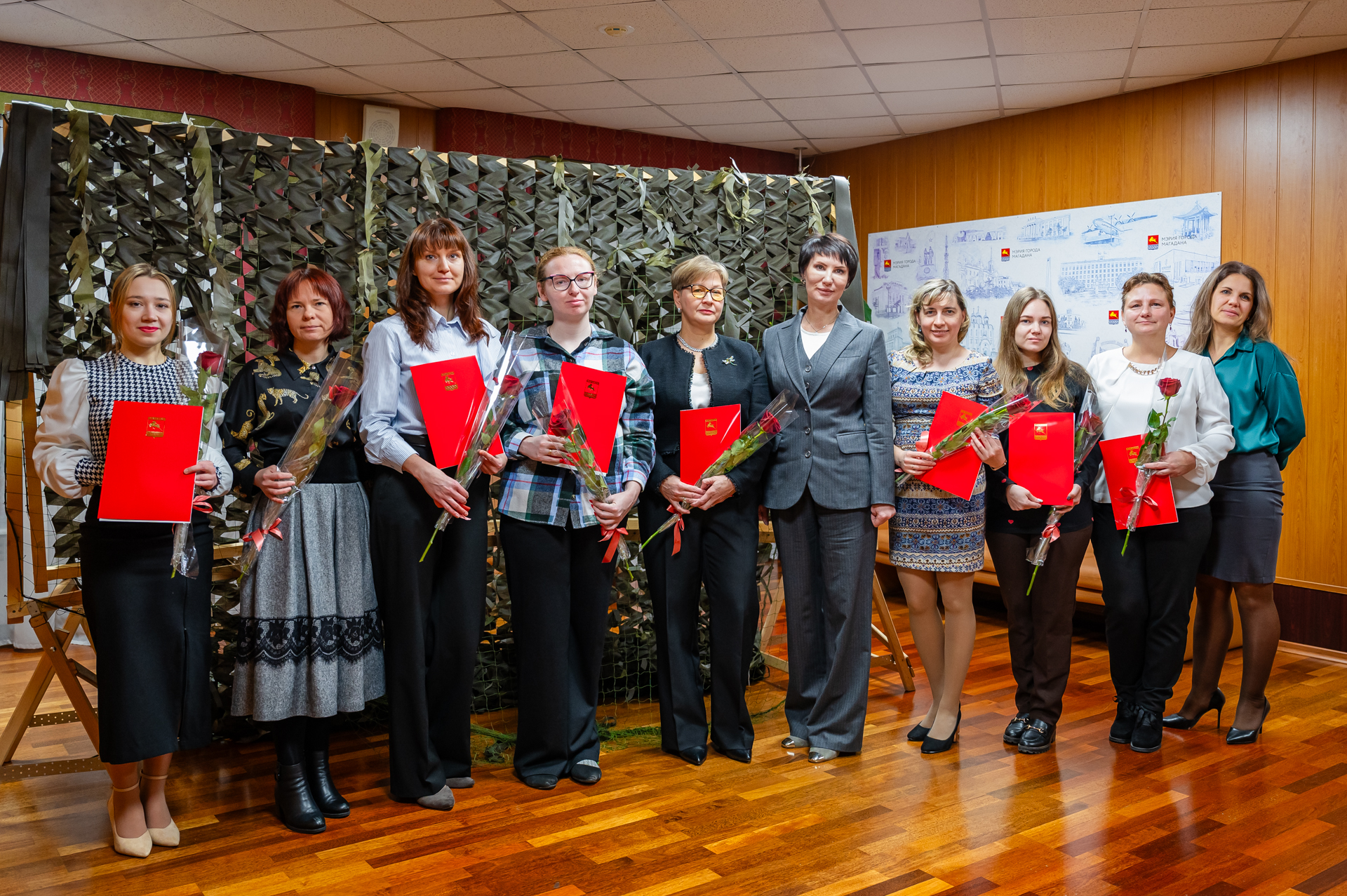 Благодарности главы муниципального образования «Город Магадан» вручила сегодня мэр областного центра Лариса Поликанова специалистам-мастерицам городской администрации, которые в свободное от работы время плетут маскировочные сети.