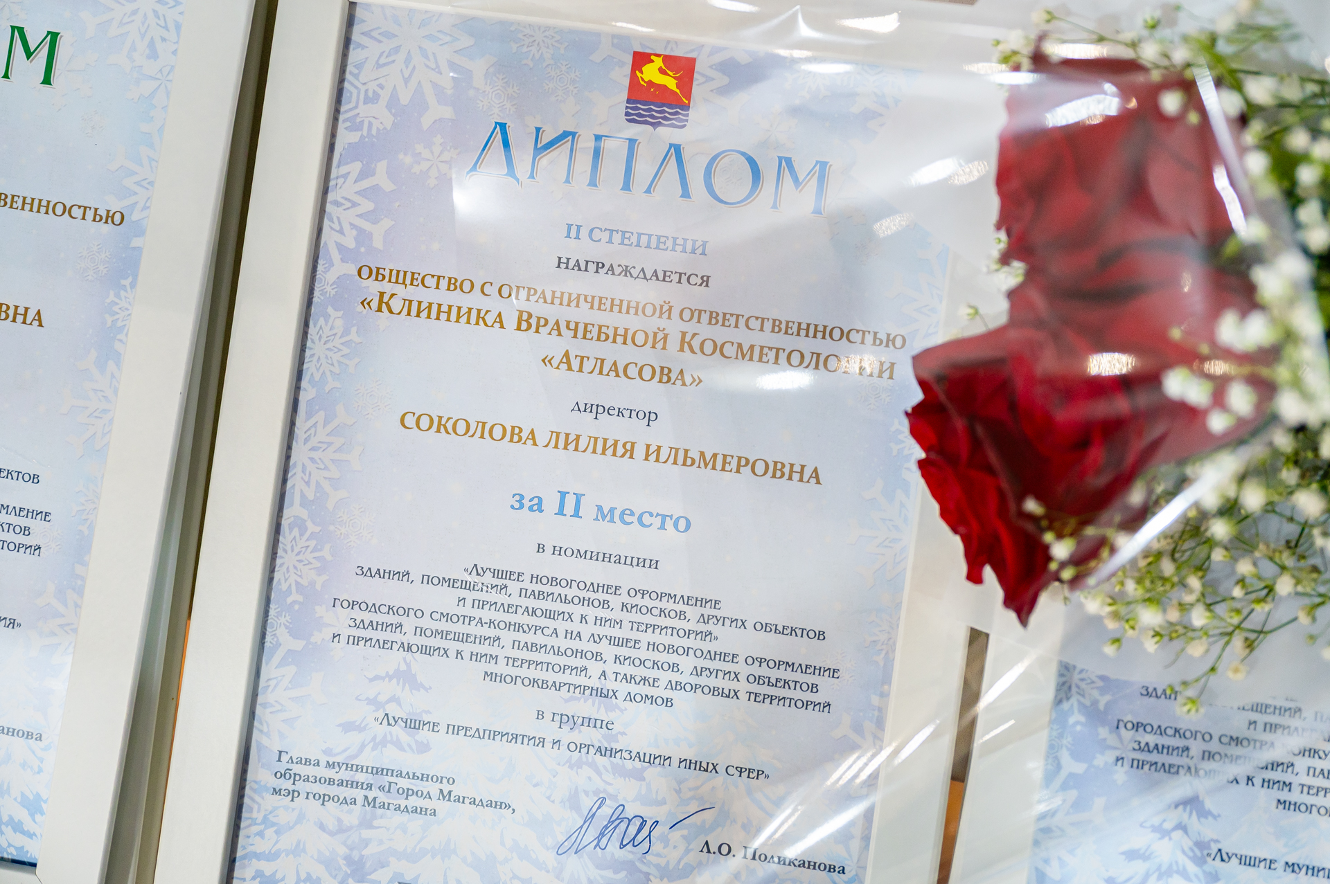 В группе «Лучшие предприятия и организации иных сфер деятельности» второе место присудили клинике врачебной косметологии «Атласова» за оформление объекта и прилегающей к нему территории на улице Набережной реки Магаданки, а первое место занял офис компании «Автоком» на Колымском шоссе.