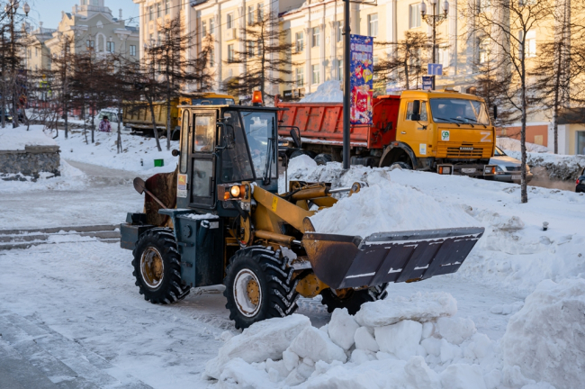 Снеговывоз организован на улицах Портовой, Октябрьской, в Марчеканском переулке.