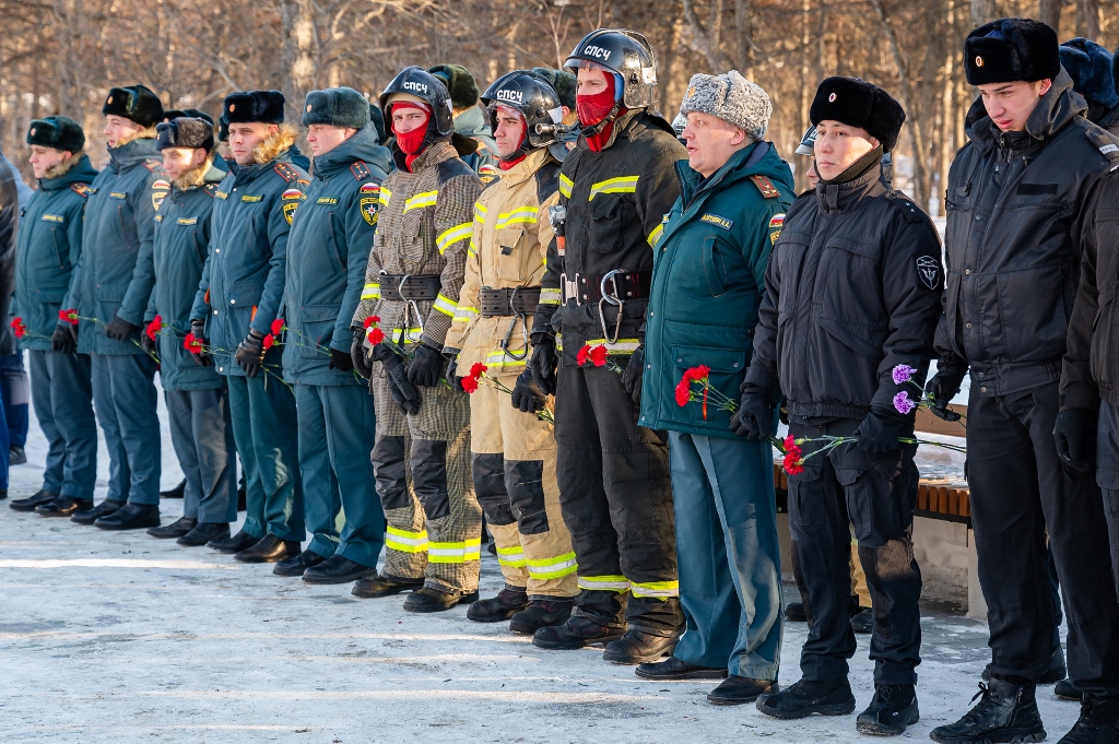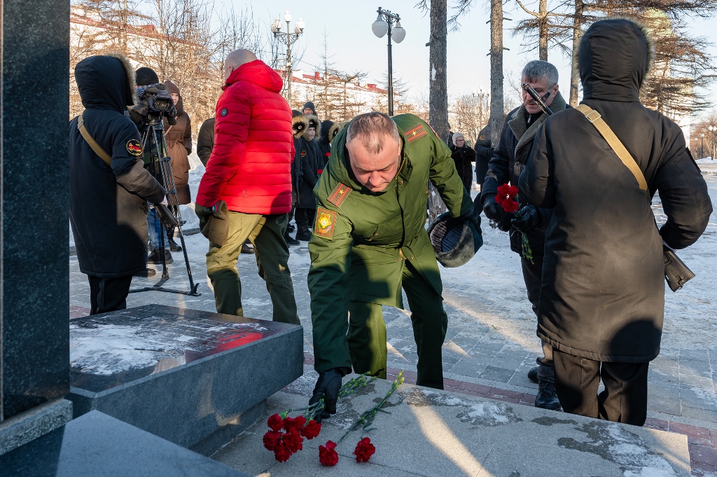 В Магадане у памятника «Землякам-колымчанам, погибшим на службе Отечеству в Афганистане, Чечне и в период других локальных конфликтов» прошла памятная церемония. В ней приняли участие ветераны боевых действий, представители органов власти, силовых структур, общественности, воспитанники патриотических клубов.