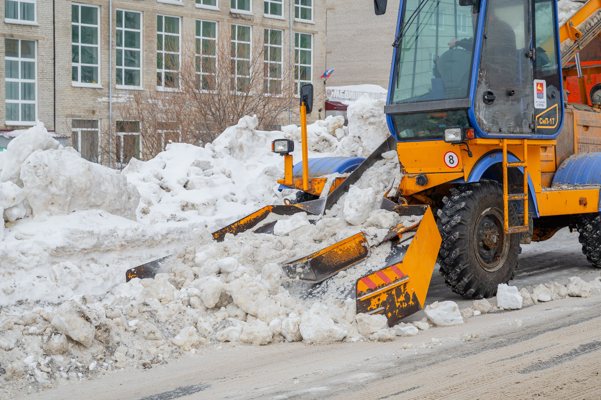 Чистят и вывозят снег на переходах на Речной и Транспортной, работают на перекрестках на Набережной реки Магаданки, 13, Пролетарской, Колымском шоссе, Кольцевой – Карла Маркса.