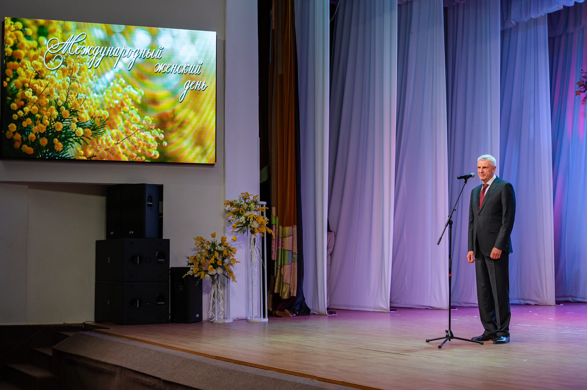 Милые женщины! От всей души поздравляю вас с праздником весны и красоты — с 8 Марта! В Магадане живут удивительные женщины — отзывчивые и талантливые, умные и сильные духом. Благодаря вам наш город становится лучше. Вы — настоящие супергероини: успеваете воспитывать детей и хранить семейный очаг, умеете преданно ждать и поддерживать своих мужчин, строить карьеру и вдохновлять окружающих, творить и оставаться прекрасными. Желаю вам, дорогие дамы, чтобы количество приятных сюрпризов не зависело от календаря. Пусть ваши родные и близкие будут здоровы, пусть каждый день приносит радость, а рядом всегда будут люди, которые искренне любят и ценят вас. Будьте счастливы каждый день! С праздником! - сказала со сцены Лариса Поликанова.