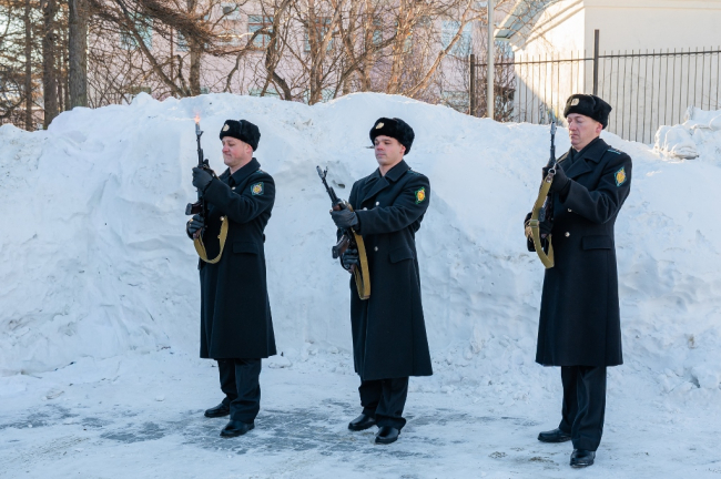 Почетный караул, минута молчания, троекратный оружейный залп и возложение цветов